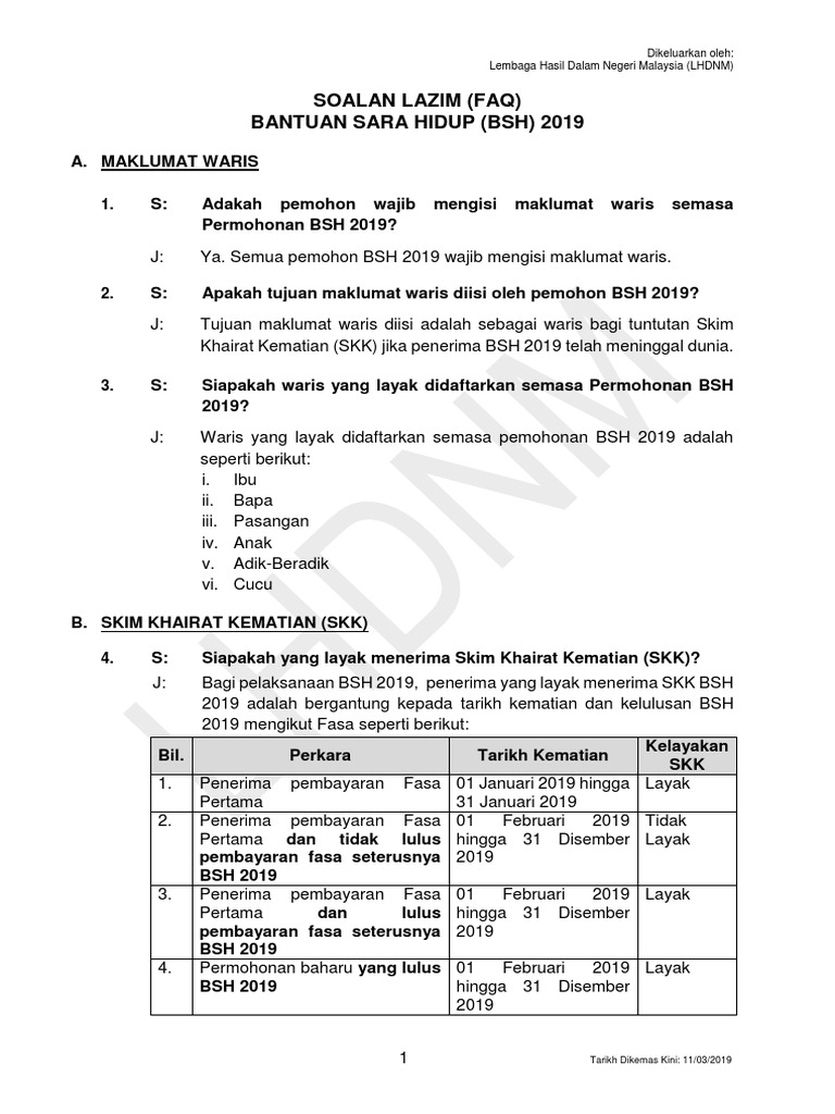 Contoh Lembar Pengesahan Proposal. Jadual Pembukaan Kaunter BSH Di Cawangan LHDNM. Jenis Individu Yang Layak menerima Bantuan Sara Hidup BSH.
